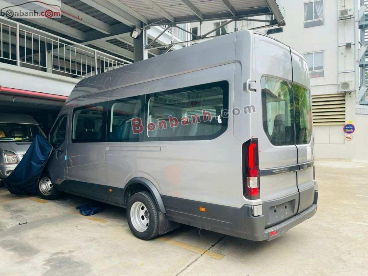 Ford Transit 18 chỗ trang bị động cơ Turbo Diesel 2.3L – TDCi tăng áp, cho công suất khoẻ (~171 PS) và mô-men xoắn lớn (~425 Nm), giúp xe chở tải nặng vẫn êm, leo dốc mạnh mẽ và tiết kiệm nhiên liệu khi chạy dịch vụ.
