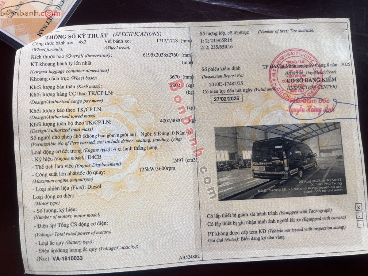 Nhãn hiệu : HYUNDAI Solati