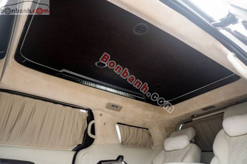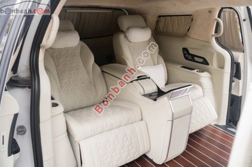 Xe màu trắng nội thất kem bản 4 ghế VIP zin do hãng chế tạo, đầy đủ ghế massage, bàn làm việc, tivi trần sao…