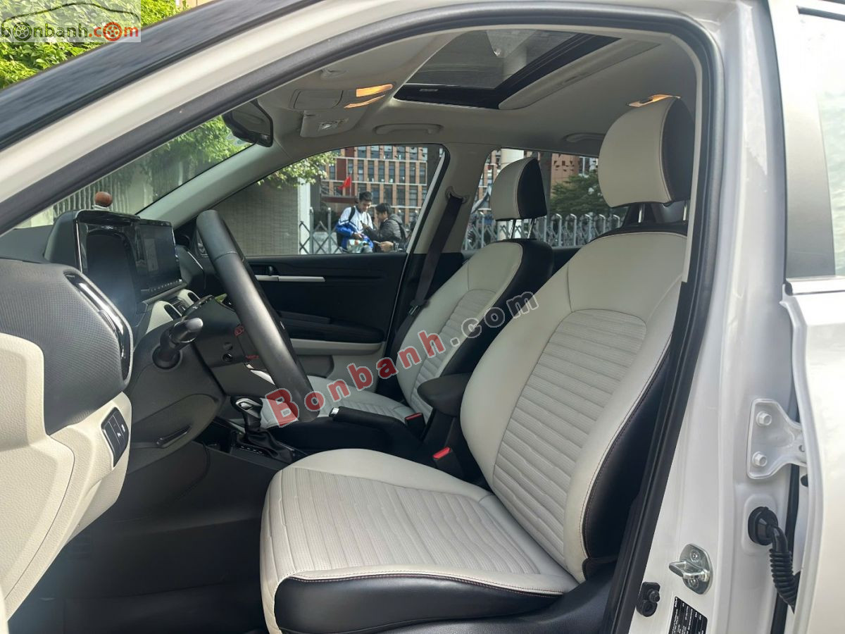 Kia Sonet 2024 bản Premium là phiên bản cao cấp nhất, nổi bật với màn hình giải trí 10.25 inch, ghế lái chỉnh điện, điều hòa tự động, cửa sổ trời, 6 túi khí, đèn sương mù LED, và động cơ 1.5L kết hợp hộp số CVT, có thêm các chế độ lái và địa hình, mang lại tiện nghi và an toàn đầy đủ trong phân khúc SUV đô thị cỡ nhỏ tại Việt Nam.