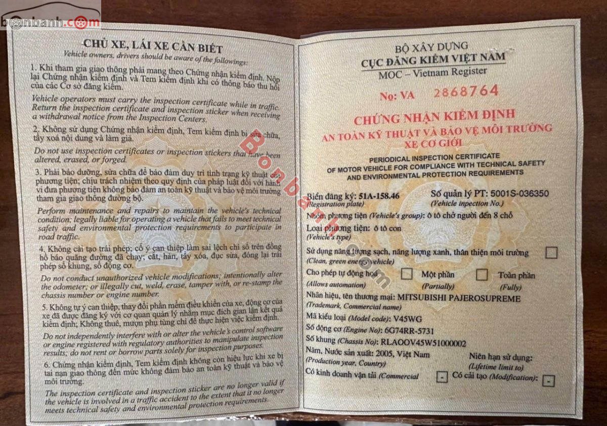 Xe ít đi, sức khỏe yếu, nhượng lại ae con PAJERO V45 SUPREME V6 3500 4X4 SUPER _ Date cuối 2005 rin chính chủ biển & gốc Saigon.