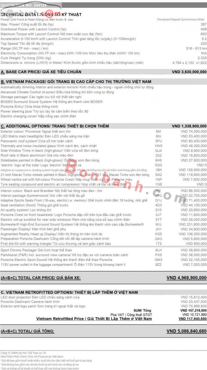 • Model Macan 4 cao cấp siêu hot, mua mới lăn bánh gần 6Tỉ. Options full đỉnh nóc kịch trần Bill 1,5Tỉ VNĐ, có cả dàn loa Burmester High-End xịn xò, mới chạy 5.000ml còn bảo hành cực dài. Mời ae: