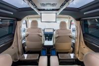Nội thất toàn gỗ và da cao cấp. Tinh hoa đặc biệt dành cho hàng ghế sau: sưởi làm mát, điều hoà riêng, ghế thương gia kèm bàn làm việc, lọc không khí nanoeX, rèm điện, âm thanh Bose tất cả được điều khiển qua màn hình riêng gắn trên tay ghế. Đúng xe dành cho ông chủ, không thiếu thứ gì!