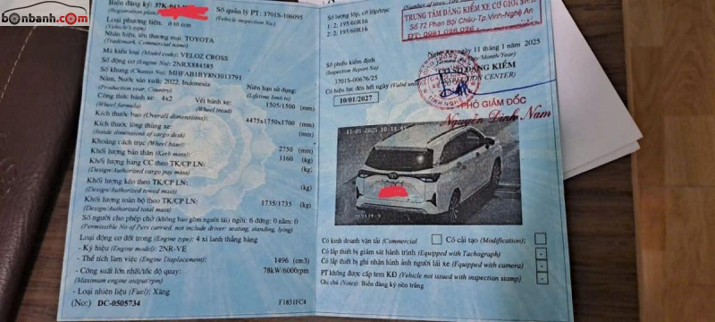 Gia đình giáo viên thành phố Vinh, Nhà 2 cái bán xe Toyota Veloz Cross, bản tiêu chuẩn CVT nhập khẩu nguyên chiếc, đời 2022, đăng ký lăn bánh lần đầu tháng 4/2023. Số Km đi Odo: 13.000, 1 chủ biển 37 từ đầu